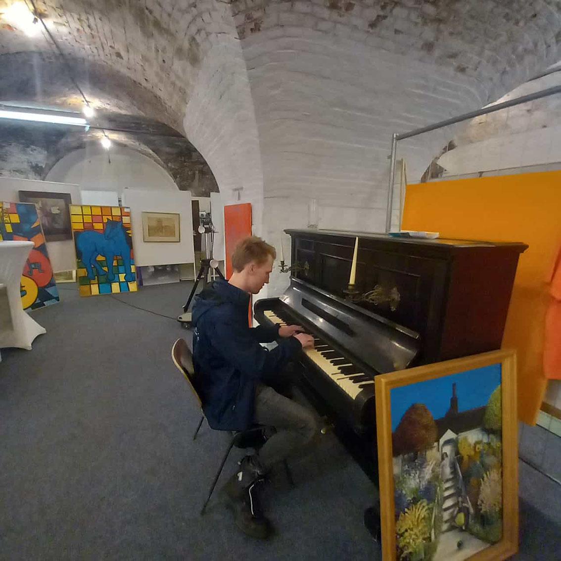 In dem Festungsteil, wo seine Malereien ausgestellt waren, gab es auch ein verstimmtes Klavier. So konnten wir Wunscherfüller:innen ein paar Lieder für unseren Gast vorspielen. Der Klang war nicht perfekt, doch es passte gut, denn nichts ist perfekt und die Zeit hinterlässt ihre Spuren. Dem Schicksal entkommt keiner.