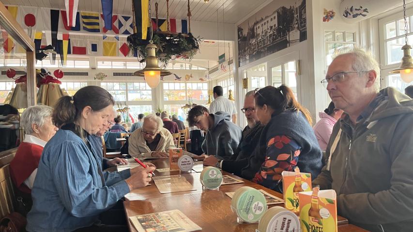 Es ist Herrn T. ein Bedürfnis, seinem Enkel diese Orte zu zeigen: wo er damals Fußball gespielt hat und welches das erste Domizil war, in dem er mit seiner Mutter und seiner Schwester als Vertriebener lebte. Nachdem diese Orte besucht und erklärt worden sind, geht es direkt nach Laboe zum Restaurant Fischküche.