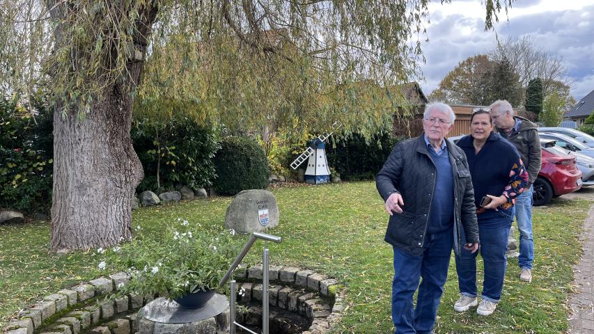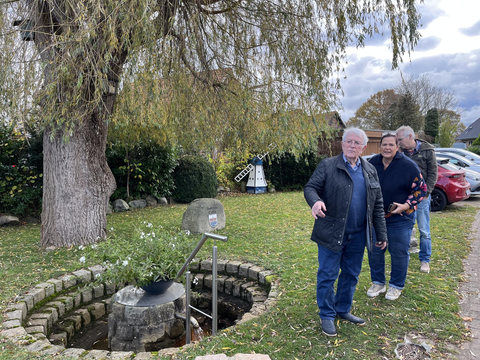 Die Route ist spontan, auf Wunsch des Gastes, geändert worden und führt uns zunächst nach Preetz zu der Adresse, an der Herr T. lange gewohnt hat. Dort stoßen noch seine Schwester mit Schwager zu uns und führen nun unseren Konvoi an. Vorbei an einer Gedenkstätte für einen Flugzeugabsturz im Zweiten Weltkrieg geht es hin zu einer Quelle in Schlesen, einem Ort, mit dem unser Gast viele Kindheitserinnerungen verbindet.