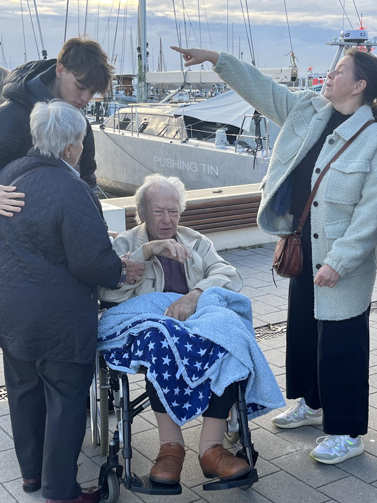 Die Fahrt ist sehr angenehm, blauer Himmel und regenfrei. Der Hafen von Laboe empfängt uns auch mit schönem Wetter und noch zwei weiteren Familienmitgliedern, die uns dankenswerterweise einen Tisch in dem sehr gut besuchten Fischrestaurant organisiert haben. Wir essen sehr lecker Fisch, und Herr T. genießt es, so im Kreise seiner Familie, mit Blick auf den Hafen, in dem noch recht viele Boote liegen.