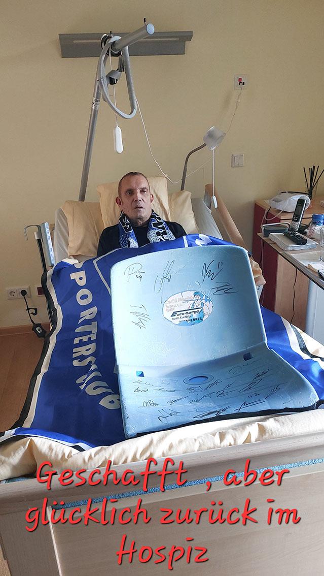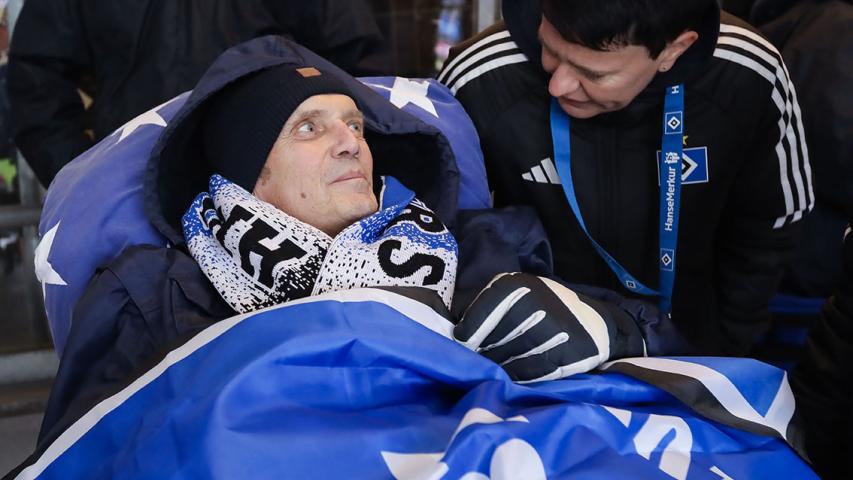 Von einem Pfleger bekam Herr M. eine HSV-Flagge, um sich als standesgemäß als Fan zu zeigen.