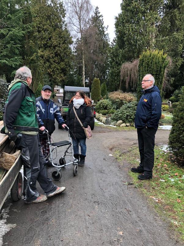Zwölf Jahre hat er dort als Friedhofsgärtner gearbeitet und nach eigener Erzählung ganz besondere Menschen gefunden, die ihm aus der Obdachlosigkeit und einer schweren Lebenskrise herausgeholfen haben. Nun war es sein sehnlichster Wunsch, diese Menschen an seiner ehemaligen Wirkungsstätte noch einmal zu treffen. Und so ging die Reise am 4. Februar vom Kieler Karl-Lennert-Krebscentrum ins 280 Kilometer entfernte Varel, wo Herr D. vom ehemaligen Chef und früheren Kollegen herzlich in Empfang genommen wurde.