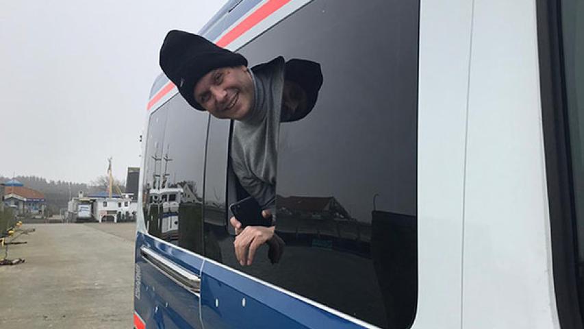 Um kurz nach 7 in der Früh ging die Reise los. Unser Fahrgast nebst Frau nahm im Wünschewagen Platz, seine drei Kinder, begleitet von Anja Ihben, im Mannschaftstransporter der FF Norderstedt. Da das erste Ziel Niebüll frühzeitig erreicht wurde, blieb noch Zeit für eine kleine Stadtrundfahrt. Während die drei Kinder im Regionalexpress nach Sylt fuhren, nahm der Rest der Gruppe mit dem Wünschewagen den DB Sylt Shuttle, welcher uns mal wieder hin und zurück komplett kostenlos beförderte. Dank bester Plätze genoss unser Fahrgast den freien Blick nach hinten raus.