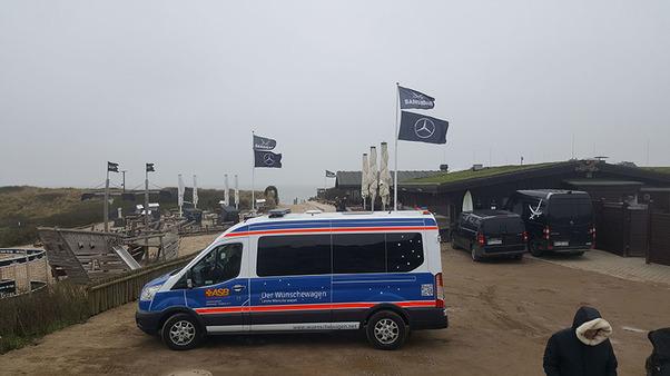 Danach stand die Sansibar auf dem Programm. Mit dem Wünschewagen durfte direkt vor der Tür geparkt werden. Die gesamte Gruppe speiste ausgiebig und lecker - und wurde zur Krönung von der Sansibar eingeladen!