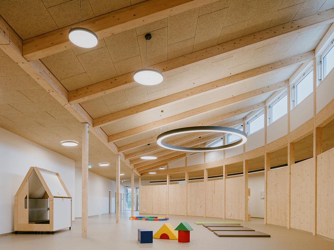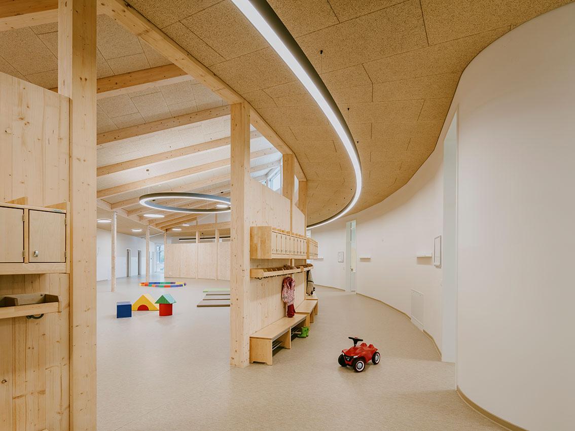 Die ASB Kita Bachlinge öffnete am 01.09.2022 ihre Pforten. Die vom Architekten Jan Braker designte Kita fügt sich futuristisch in die naturbelassene Umgebung ein und glänzt mit modernster Technik, kombiniert mit nachhaltiger Holzbauweise.
