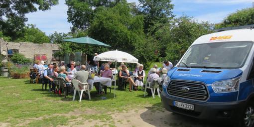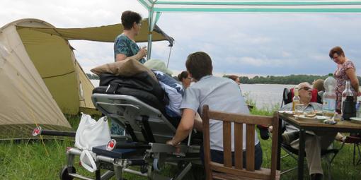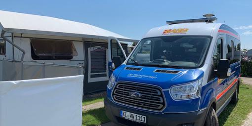 Herr P. wollte noch einmal auf dem Campingplatz in Wisch Familie und Freunde treffen. Unsere Wunscherfüller Helmut Hollstein und Ute Uhrbrook holten ihren sehr geschwächten Fahrgast mitsamt Palliativschwester Johanna aus dem Uniklinikum Kiel ab, und los ging die Fahrt zum 28 km entfernten Campingplatz Heidkoppel.