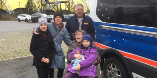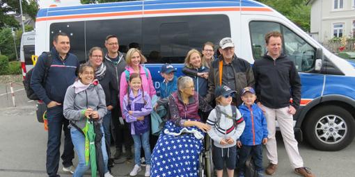Familienfoto vor dem Wünschewagen