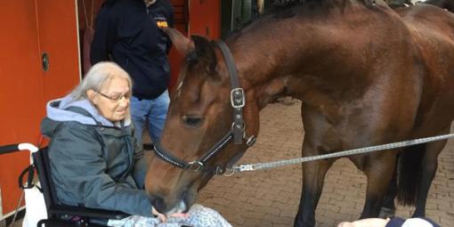 Charly ist die große Liebe von Frau J. „Groß“ im wahrsten Sinne des Wortes, denn es handelt sich um das Pferd der schwerkranken 65-Jährigen, das sie noch einmal streicheln und bei einem Turnier starten sehen wollte.