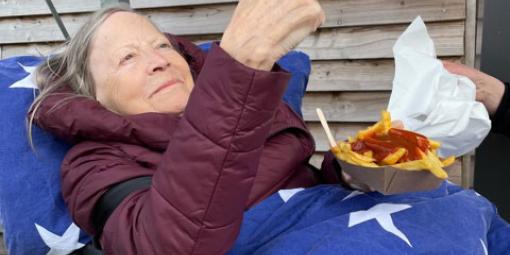 Dichter dran ging es nicht mehr. Der Wunsch von Frau G., in Büsum noch einmal Meeresluft zu schnuppern, dabei evtl. ein paar Krabben und ein Fischbrötchen zu genießen, war aufgrund ihres sehr geschwächten Zustandes nicht ganz einfach zu erfüllen.