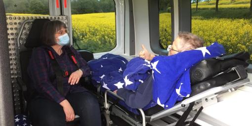 Meistens sind es unsere Fahrgäste selbst, die einen Herzenswunsch bei uns anmelden, persönlich, über Angehörige oder ihr Hospiz. Manchmal ist das Fahrziel aber auch eine große Überraschung. So auch für Karin V., die nur wusste, dass am 2.6. der Wünschewagen kommt. Wohin die Reise gehen sollte, erfuhr sie erst am Tag selbst.